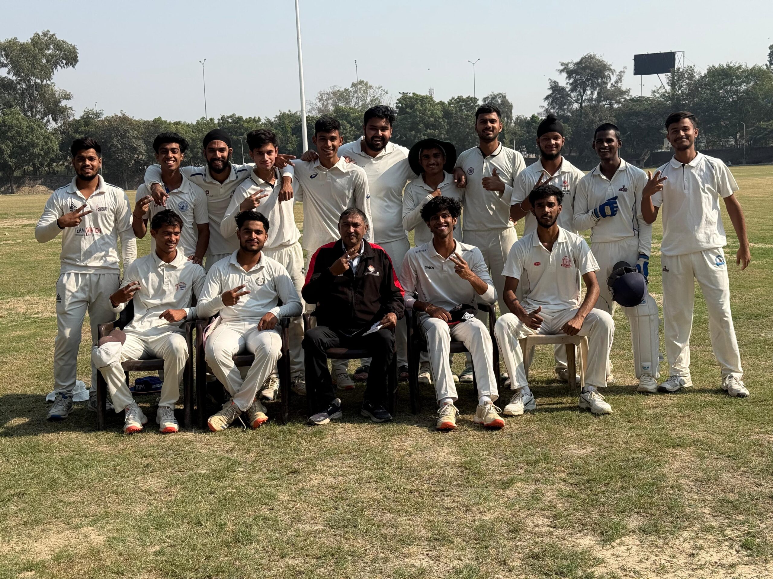 स्वामी श्रद्धानंद कॉलेज के मैदान पर दयाल सिंह कॉलेज ने पहले बल्लेबाजी करते हुए 182 रन 35.5 ओवर में बनाए। अक्षत बिष्ट ने 36 रन 4 चौके, उप कप्तान संयम सिंह ने 33 रन 4 चौक व 1 छक्का तथा गुरनूर  ने 28 रन 3 छक्के 1 चौका की मदद से बनाये। रोनित ने 34 रन देकर 4 विकेट लिए।