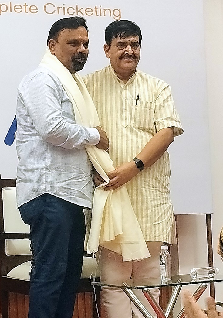 द्रोणाचार्य अवार्ड प्राप्त प्रसिद्ध क्रिकेट कोच श्री संजय भारद्वाज का स्वागत करते हुए श्री बालकृष्ण।