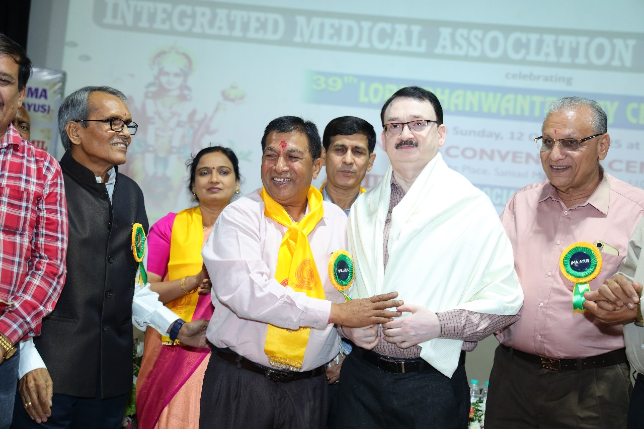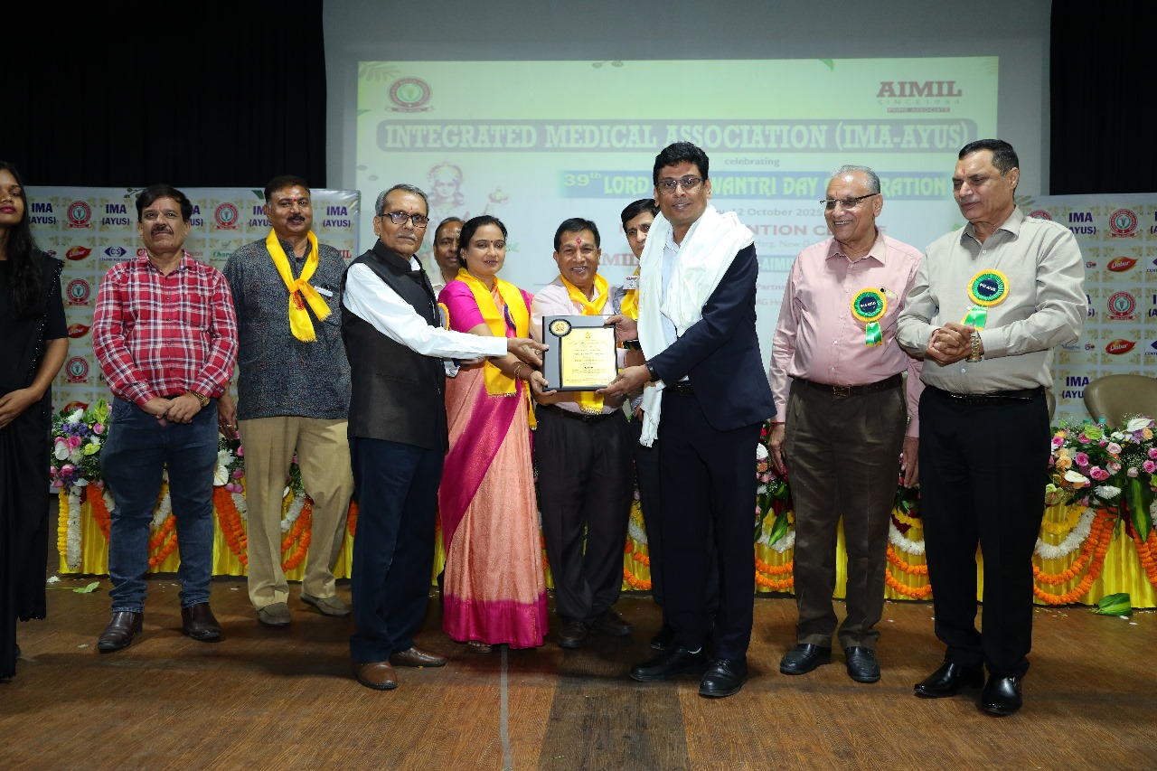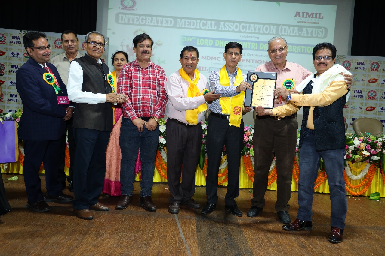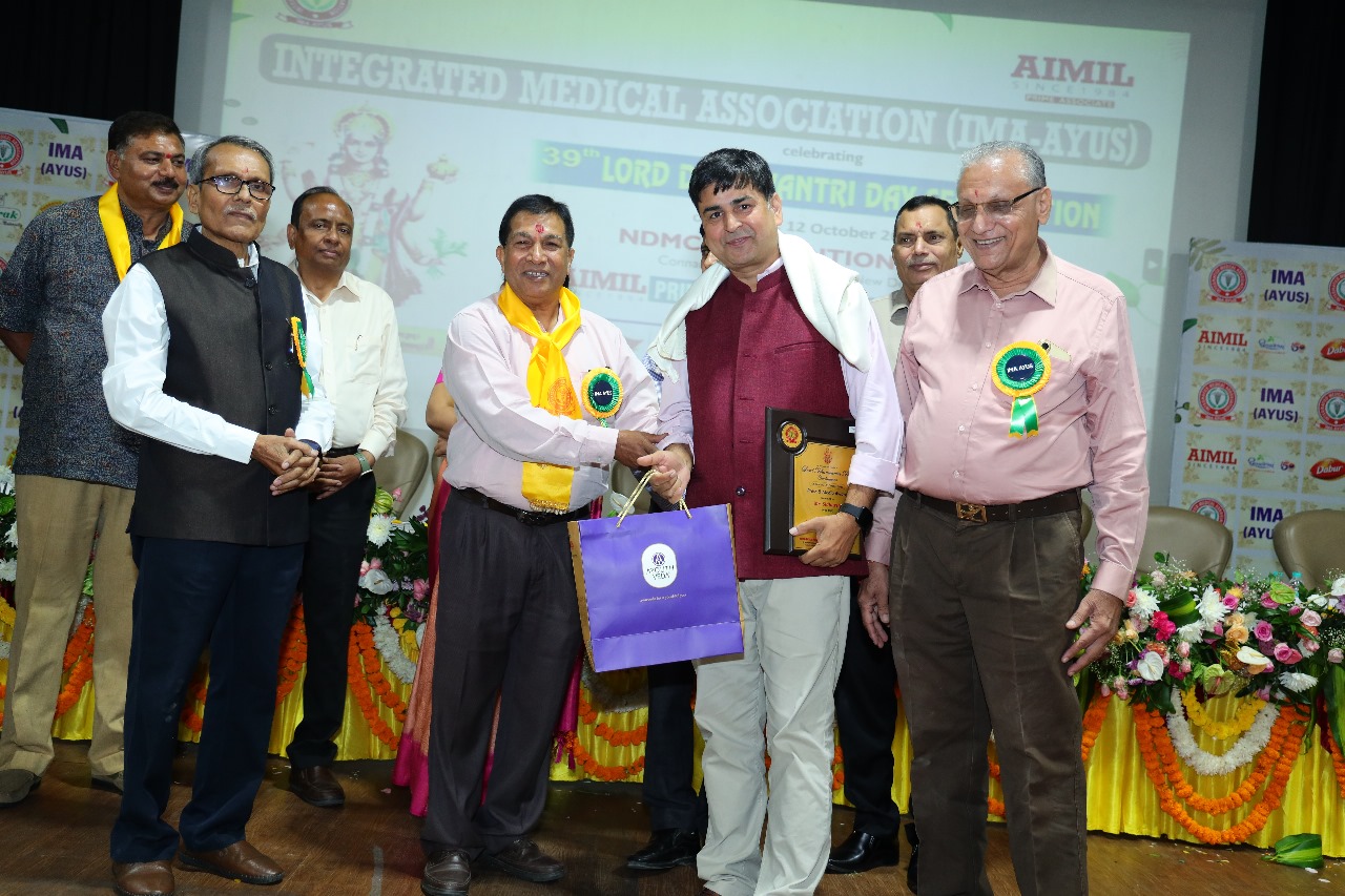 नई दिल्ली। इंटीग्रेटेड मेडिकल एसोशिएशन (आईएमए-आयुष) ने अपना 39वां वार्षिकोत्सव ‘भगवान धनवंतरि जयंती समारोह’ का आयोजन एनडीएमसी सभागार, संसद मार्ग, कनॉट प्लेस में किया। दिल्ली के मेयर श्री राजा इकबाल सिंह ने समारोह का उद्घाटन भगवान धनवंतरि पूजा से किया।