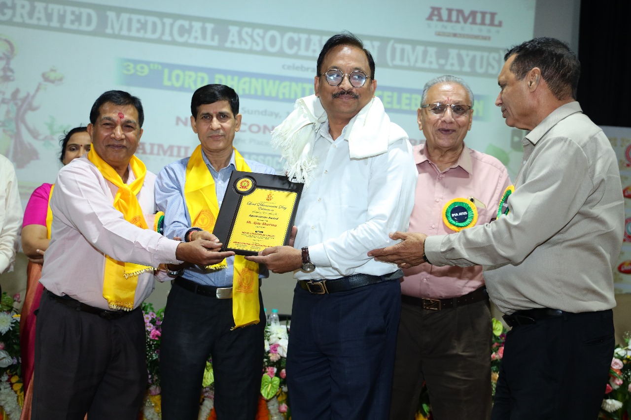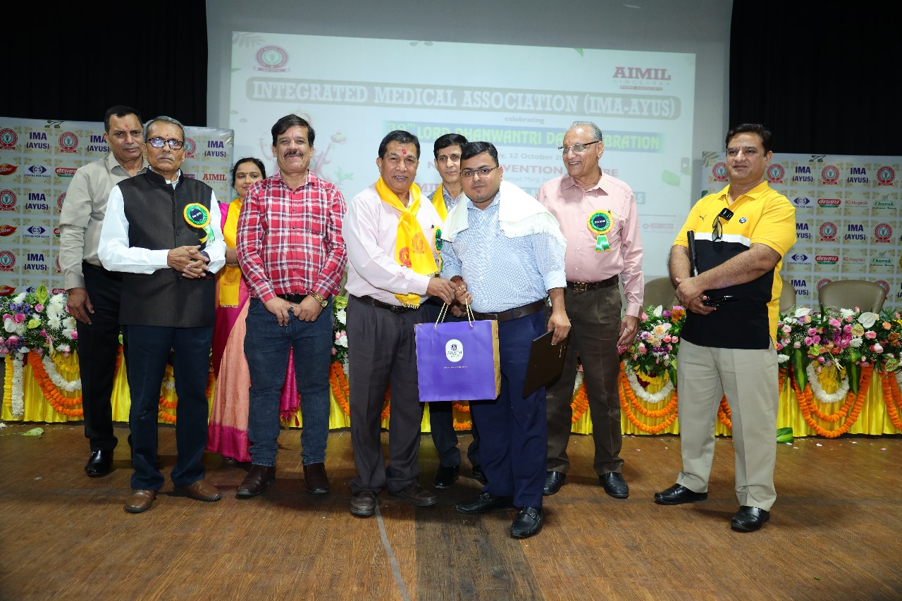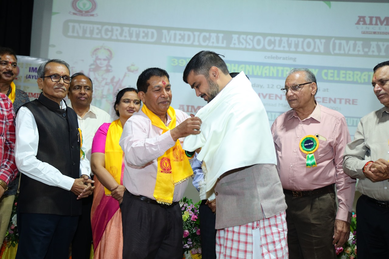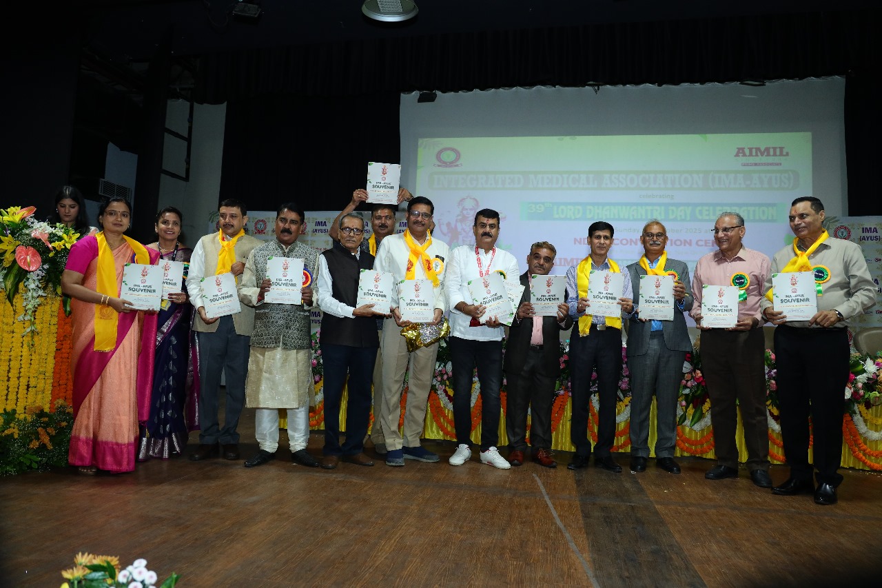 आईएमए-आयुष के मीडिया प्रभारी एवं लीगल कमेटी के चेयरमैन डॉ रामफल पांचाल ने बताया कि इसके बाद धनवंतरि वंदना से आयोजन का शुभारंभ हुआ। समारोह की अध्यक्षता डॉ एम बी गौड (निदेशक चौधरी ब्रह्म प्रकाश चरक संस्थान दिल्ली) ने की। विशिष्ट अतिथि डॉ पी के प्रजापति निदेशक ऑल इंडिया इंस्टीट्यूट ऑफ आयुर्वेद (ए आई आई ए) एवं गणमान्य अतिथि डॉ के डी पाठक (मुख्य रिपोर्टर दैनिक वीर अर्जुन), डॉ विद्यावती (डीन, एस जी टी, यूनिवर्सिटी,गुरुग्राम)थे। इन सभी अतिथियों का स्वागत आई एम ए (आयुश) के दोनों संरक्षक डॉ आर एस चौहान और डॉ ओ पी वशिष्ठ जी ने स्मृति चिन्ह देकर किया।