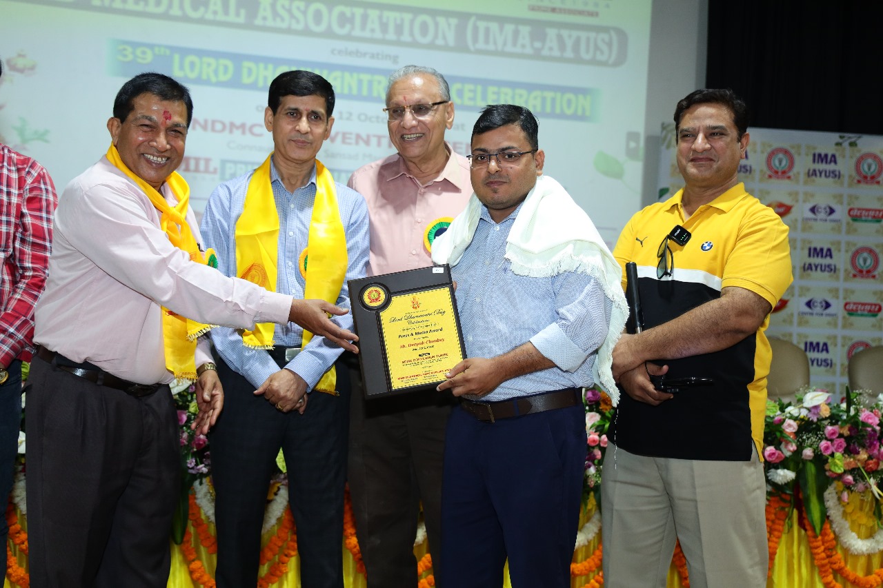 संस्था मीडिया प्रभारी डॉ पांचाल ने बताया कि डॉ भीमा भट्ट जी को आयुर्वेद चिकित्सा और प्रो.(डॉ) हकीम मो. मज़ाहिर आलम जी को यूनानी चिकित्सा में सराहनीय कार्य करने के लिए संस्था का धनवंतरि अवॉर्ड डॉ पी के प्रजापति( निदेशक ऑल इंडिया इंस्टीट्यूट ऑफ आयुर्वेद) और माननीय मेयर श्री राजा इकबाल सिंह जी ने देकर सम्मानित किया।