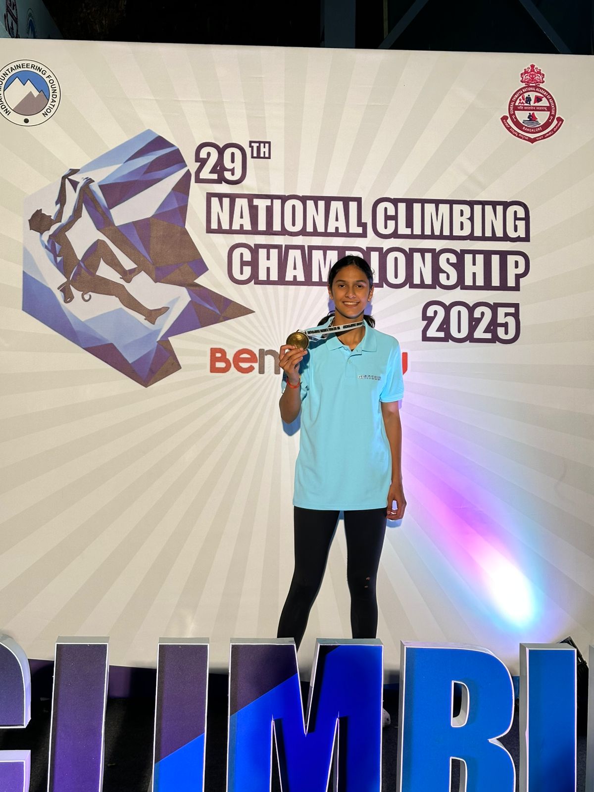 दिल्ली के वसंत वैली स्कूल की छात्रा 14 वर्षीय अमेयरा खोसला ने 29वीं राष्ट्रीय स्पोर्ट क्लाइम्बिंग चैंपियनशिप 2025 में स्वर्ण पदक जीता