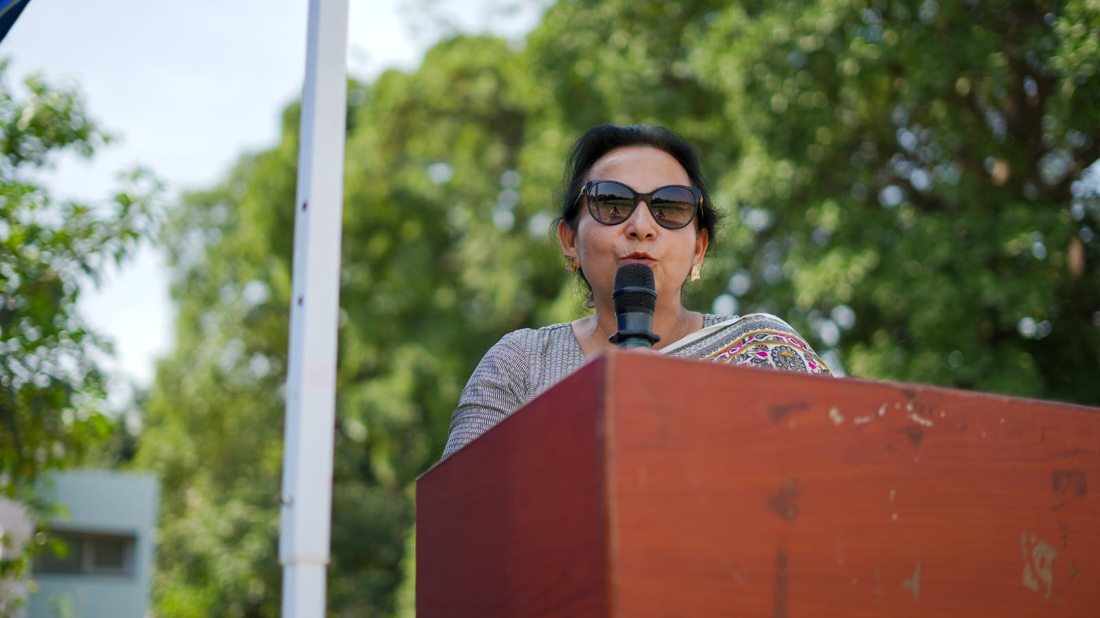 Monika of Shyama Prasad Mukherjee College receiving Player of the match award.