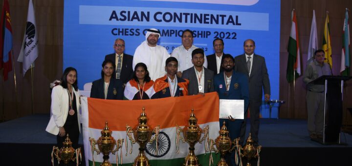 1,073 ViewsKhel Today Bureau New Delhi:  Top seed Grandmaster Praggnanandhaa R and Women Grandmaster Nandhidhaa P V became the Asian Champions in the Open and Women’s sections respectively in the Asian Continental Chess Championship which concluded here...