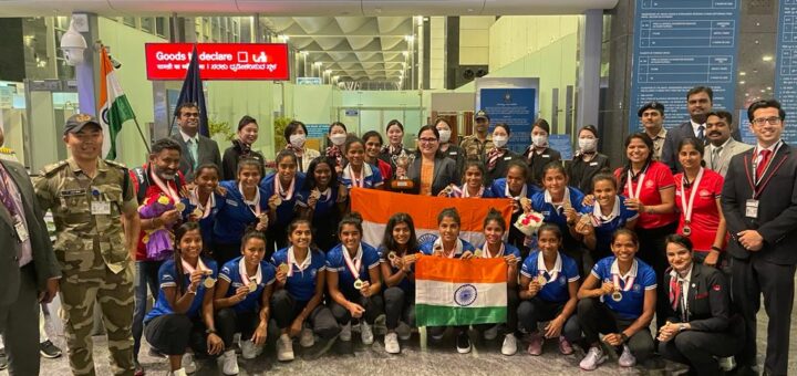 702 Views Khel Today Bureau Bengaluru: The India Junior Women’s Hockey team returns to the Kempegowda airport after a historic triumph at the Junior Asia Cup Hockey Championship. Officials from SAI felicitated them last night and made...