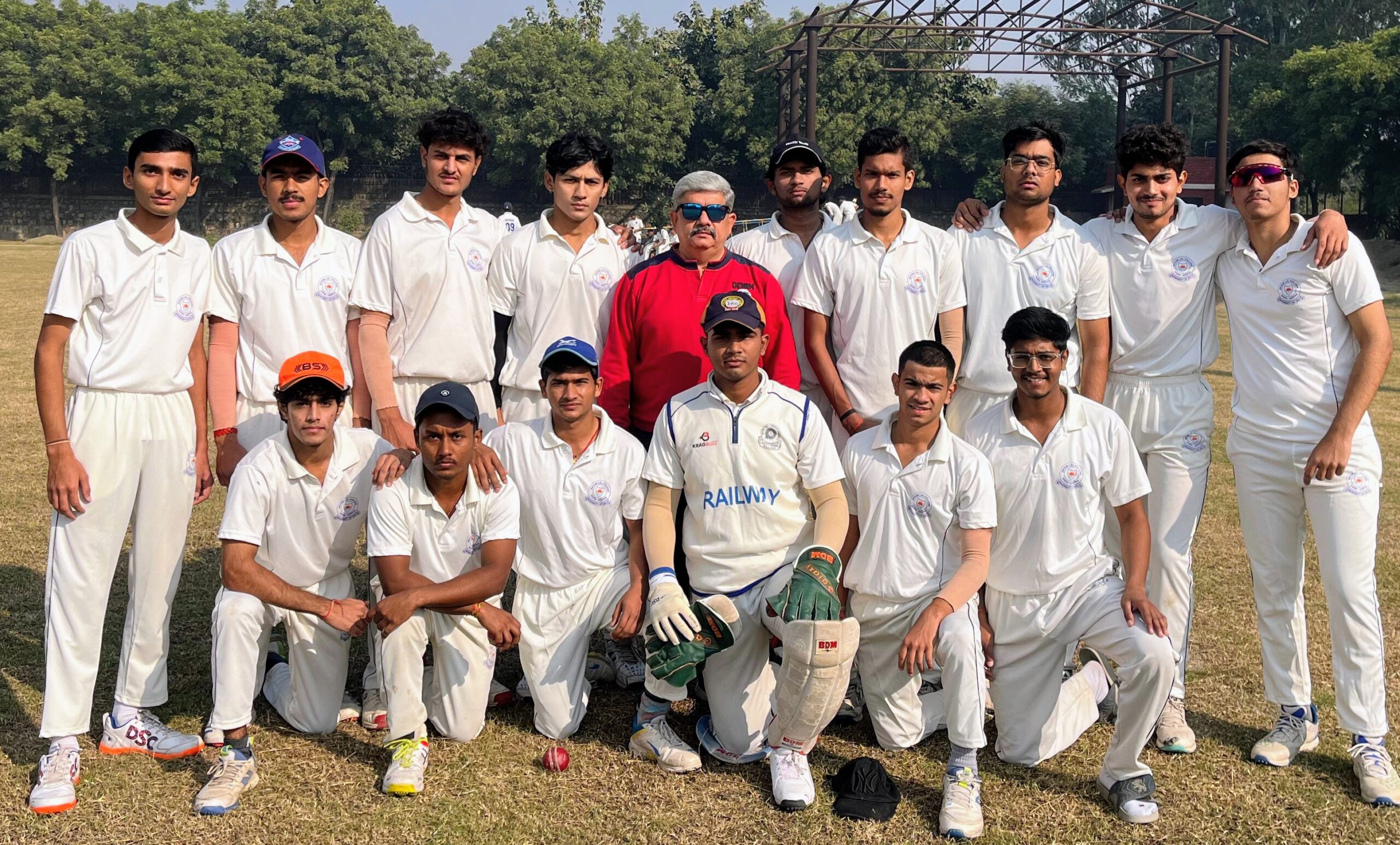 Shyam Lal College Cricket team with Cricket Coach Mr. Rakesh Thapliyal.