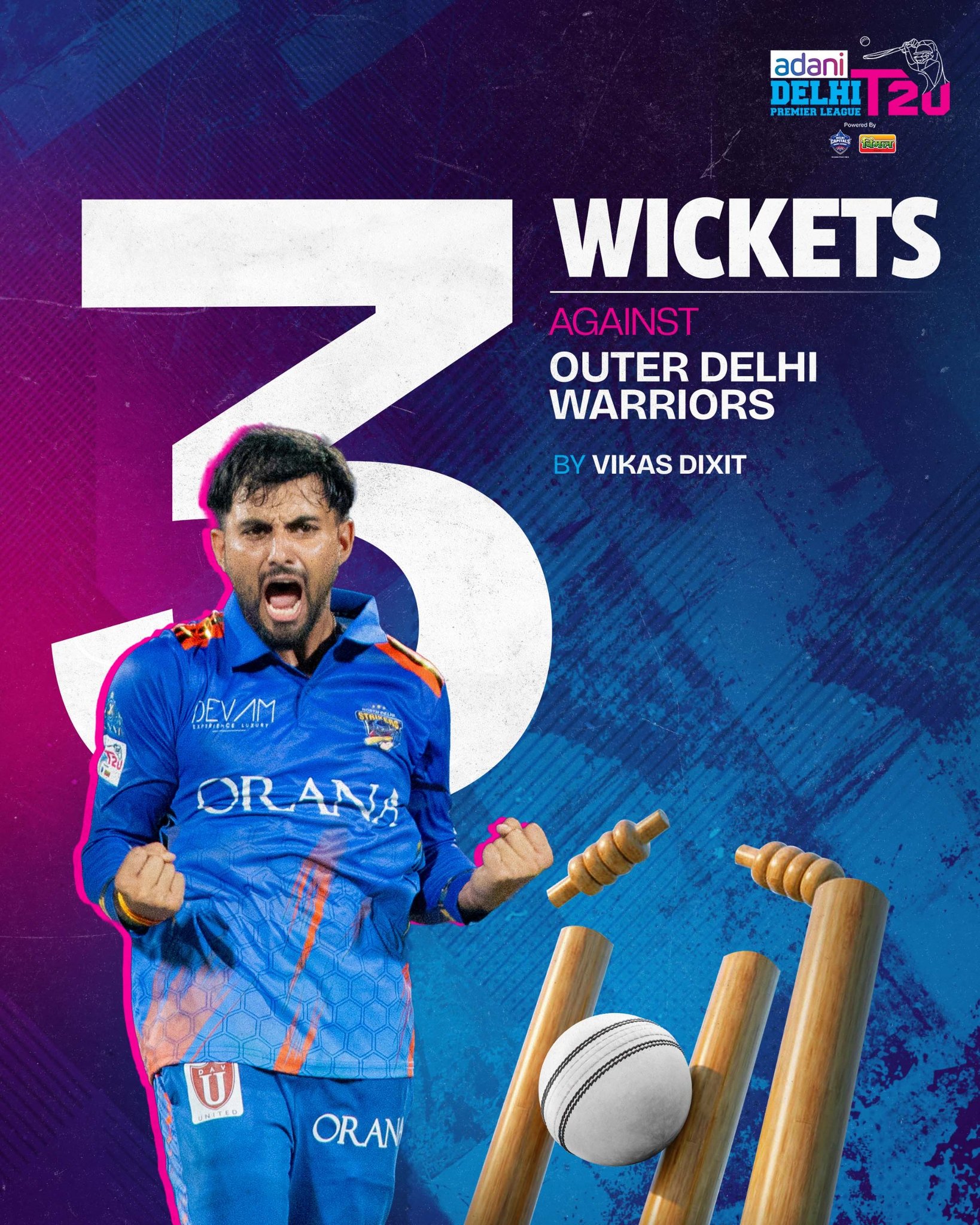 Outer Delhi Warriors bowling attack was led by Harsh Tyagi, who emerged as the most economical bowler with figures of 4-1-19-2, maintaining an impressive economy rate of 4.80. Also, Siddhant Sharma and Kamal Bairwa claimed two wickets each.