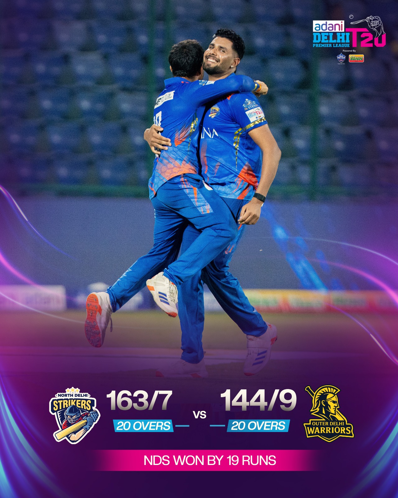 New Delhi: North Delhi Strikers successfully defended their total of 163, defeating Outer Delhi Warriors by 19 runs in a thrilling encounter at the Arun Jaitley Stadium as the Warriors were restricted to 144 for 9 in their 20 overs.w