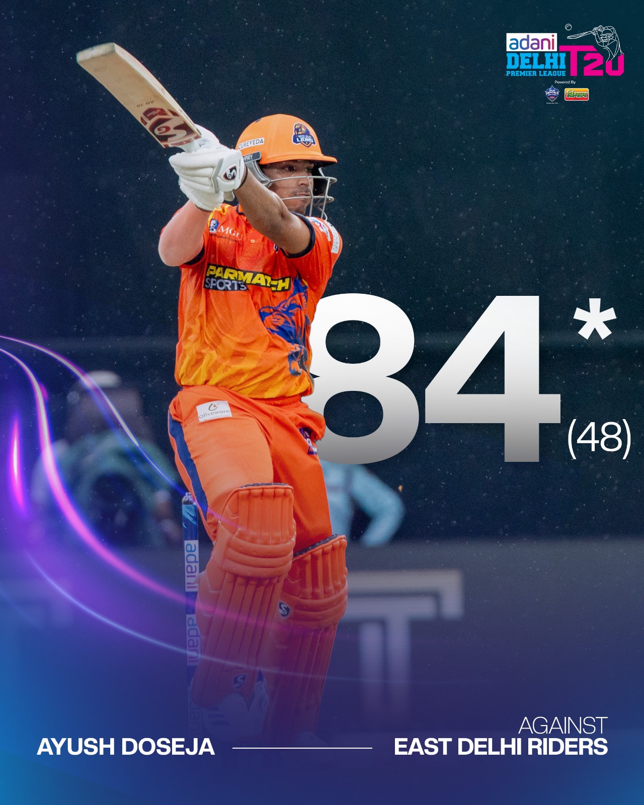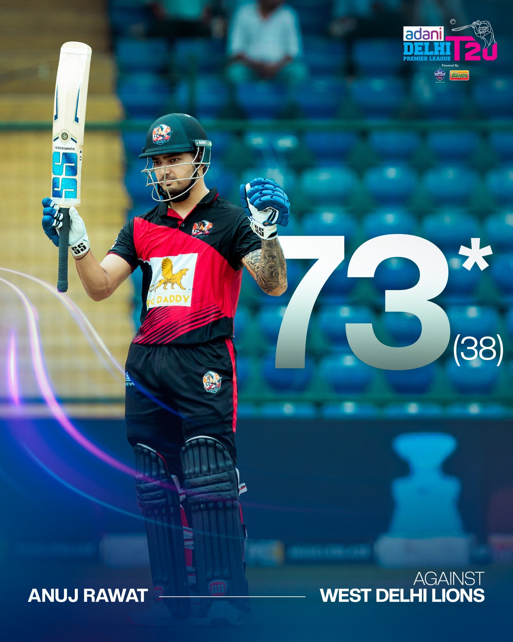 Earlier in the evening, East Delhi Riders posted a formidable 208/4 in 20 overs, riding on a power-packed performance from their captain and wicketkeeper-batter Anuj Rawat, who scored an unbeaten 73 off 38 balls, laced with 6 fours and 5 sixes. He was well supported by Arpit Rana (44 off 28) and Mayank Rawat (40 off 28), both of whom played fluent knocks to lay a solid platform.