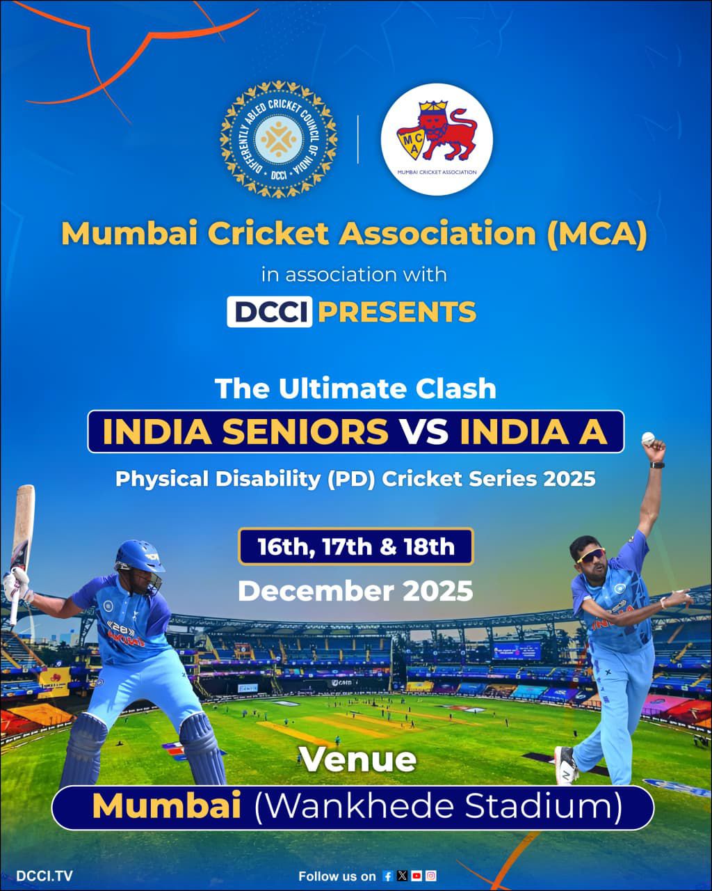 “Hosting the Physical Disability Cricket Series for the very first time is a proud milestone for MCA—celebrating resilience, redefining ability, and reaffirming that cricket truly belongs to everyone. Our President, Mr. Ajinkya Naik, is deeply committed to promoting and celebrating physical disability cricket, and we will continue to extend our full support.”