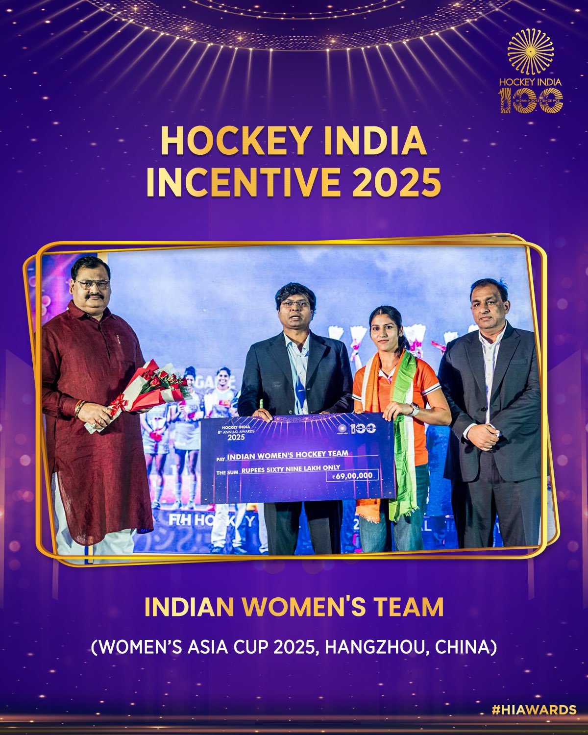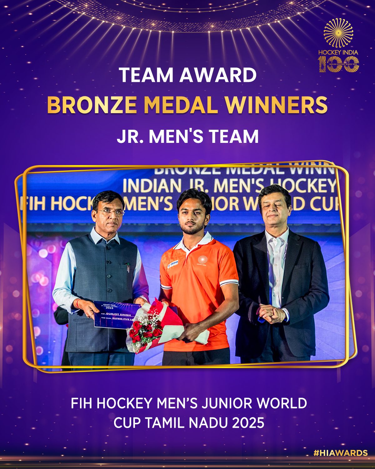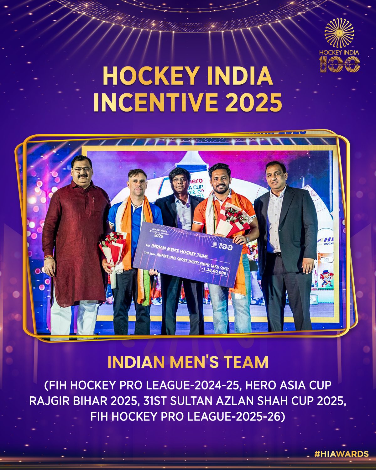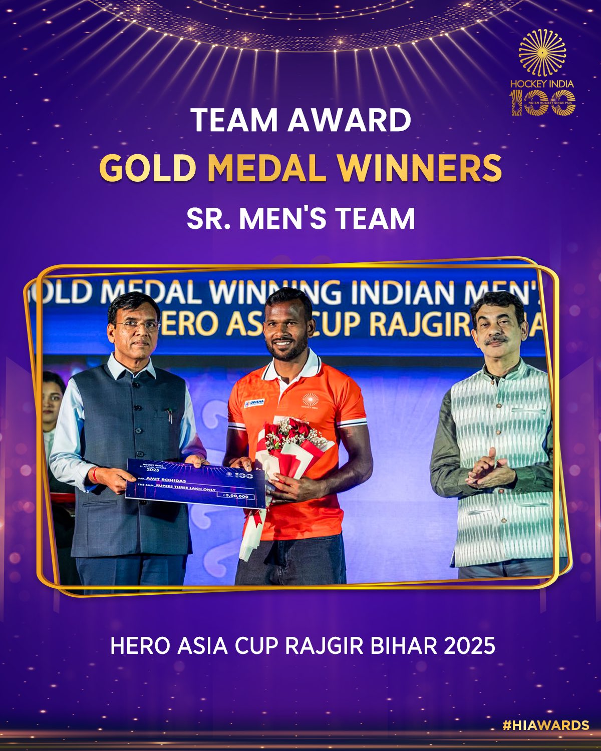 The gold medal-winning Men’s Hockey Team from the Hero Asia Cup Rajgir Bihar 2025 were felicitated during the ceremony, with each player receiving INR 3 lakh and the support staff receiving INR 1.5 lakh each. The bronze medal-winning Indian Junior Men’s Hockey Team from the FIH Hockey Men’s Junior World Cup Tamil Nadu 2025 were also honoured, with players receiving INR 5 lakh each and support staff receiving INR 2.5 lakh each.