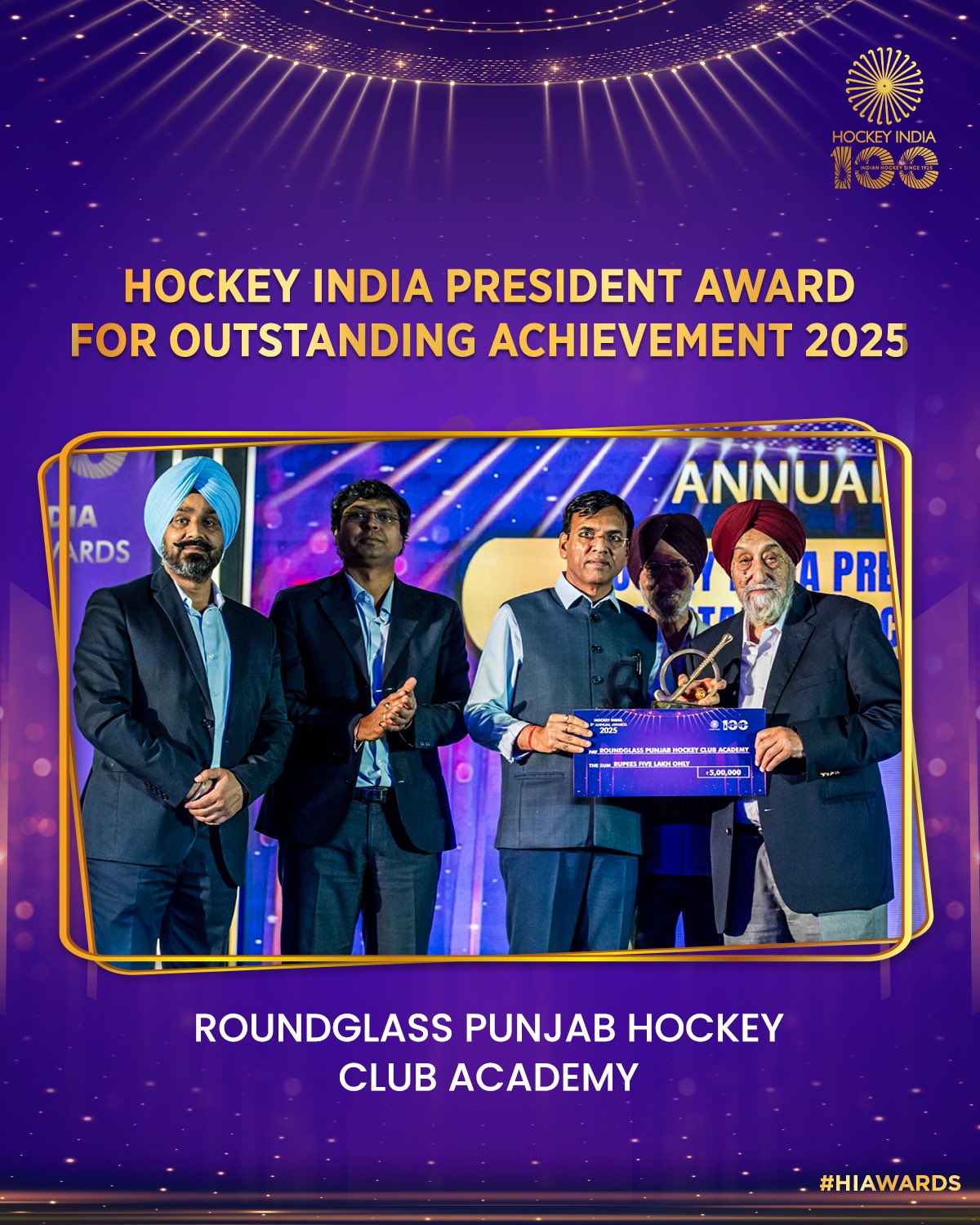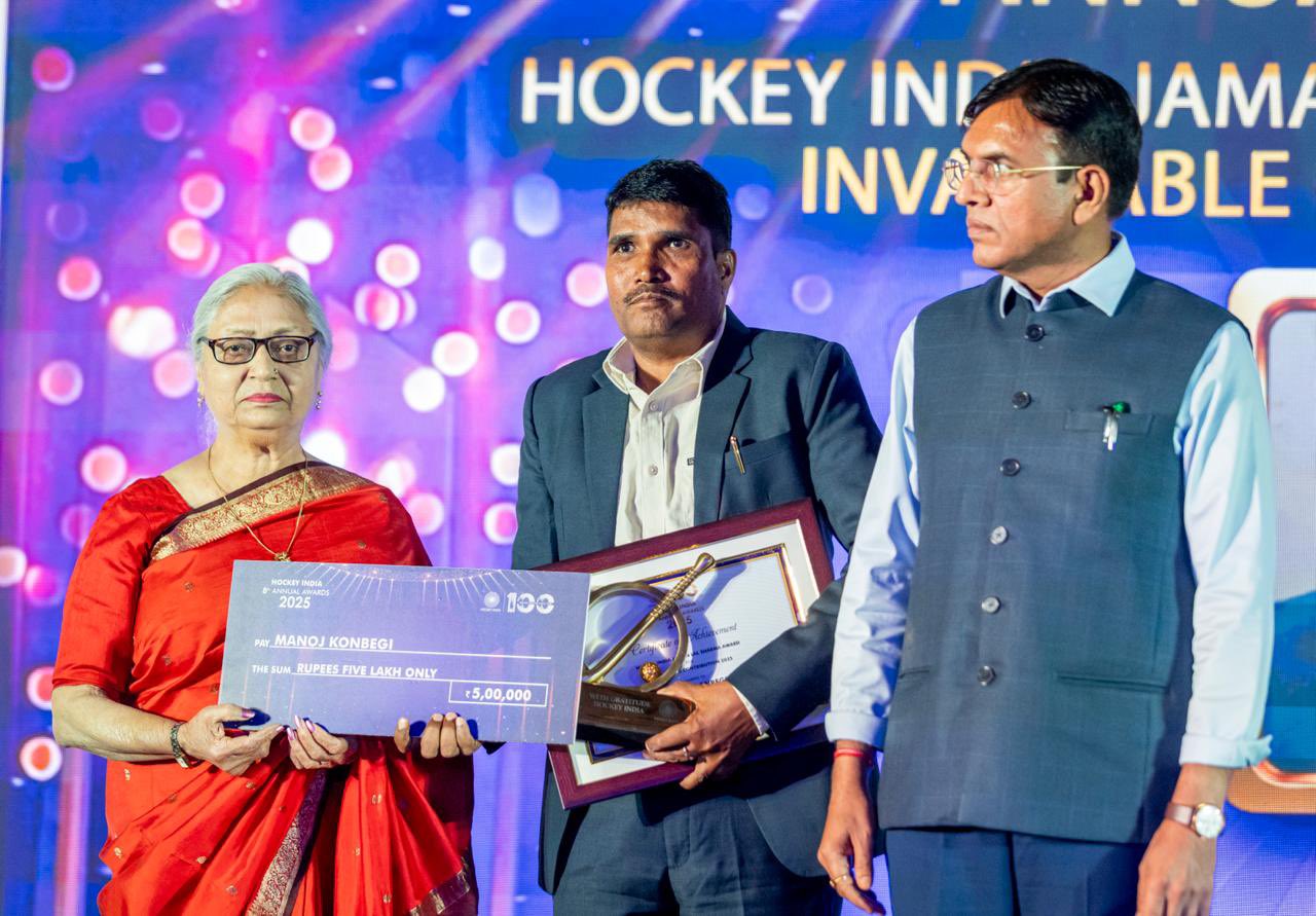 The Hockey India President Award for Outstanding Achievement 2025 (INR 5 lakh) was presented to Shri Sardar Sarpal Singh from Roundglass Punjab Hockey Academy, while the Hockey India Jaman Lal Sharma Award for Invaluable Contribution 2025 (INR 5 lakh) was awarded to Manoj Konbegi.