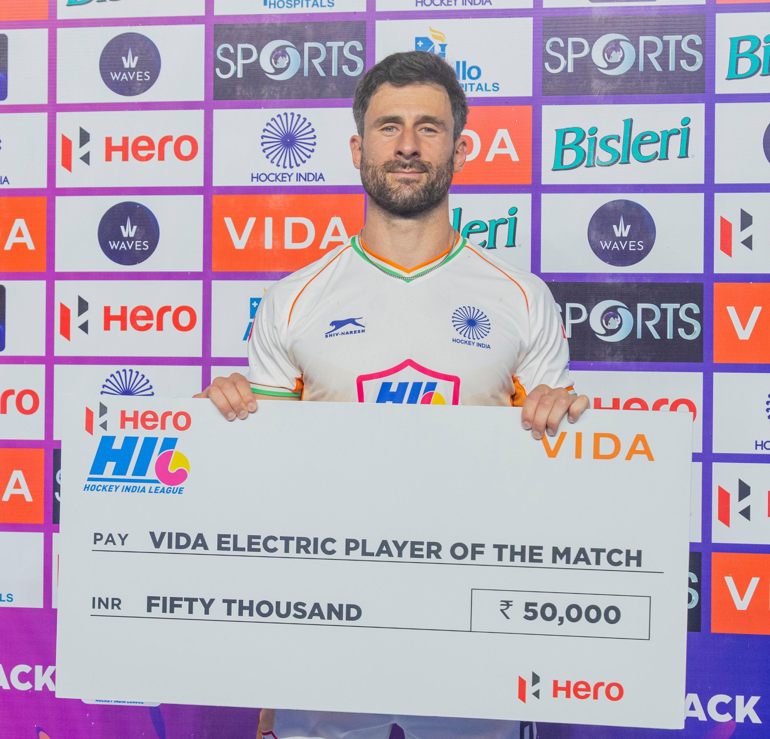 Ky Willott (31′) and Dilraj Singh (56′) scored a goal each for the Pipers, while Kane Russell (35′, 37′, 60′) netted a hattrick for HIL GC.