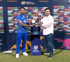 Junaid Siddique receiving ‘Player of the match’ award from Mr. Rohan Jaitley, President, DDCA.