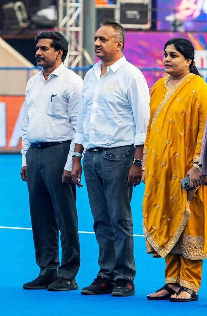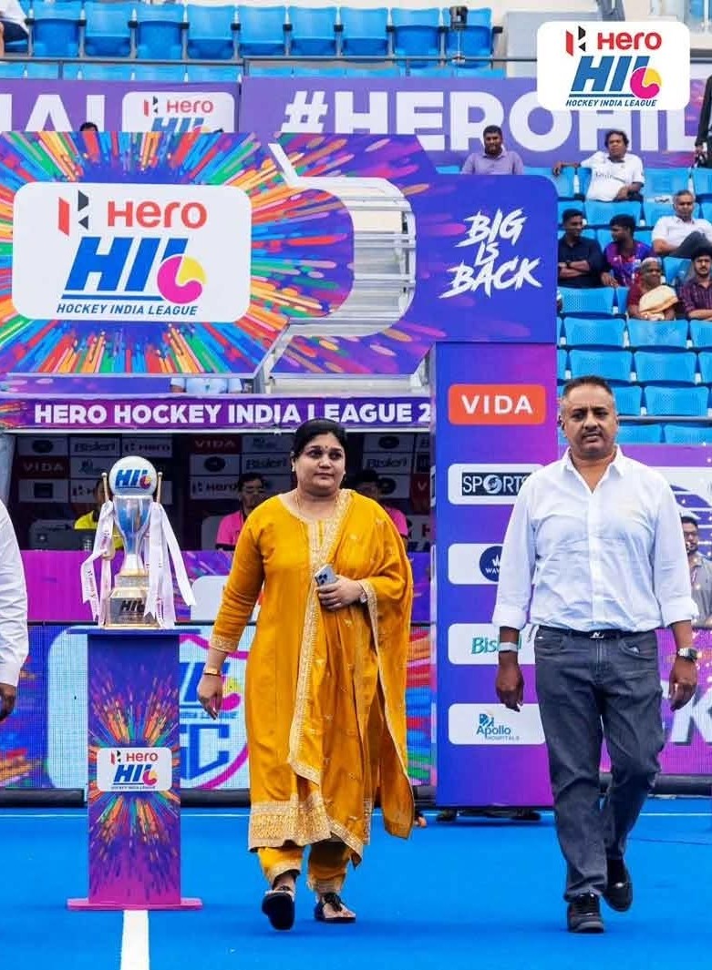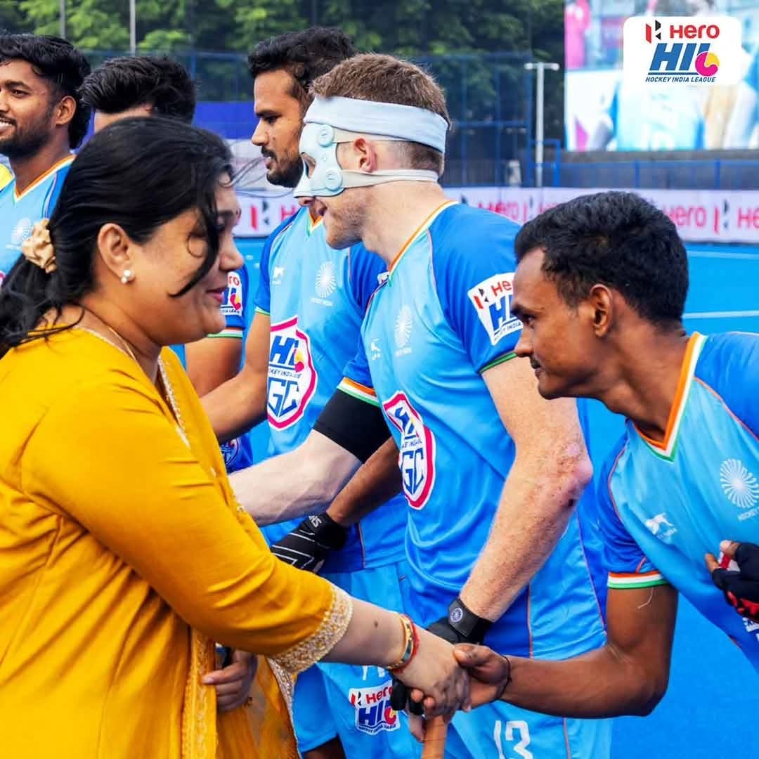 Hockey India wrote on Social Media “Honoured to welcome our distinguished guests ahead of match day in Chennai.Thank you Mrs. B. Yamuna Devi, IRS, Commissioner of Customs & GST; Thiru V. Manikandan, District Revenue Officer / General Manager (Admin.), Sports Development Authority of Tamil Nadu; and Thiru Vinod Gandhi, Managing Director, The Geekay World School, for joining us pre-match for HIL GC vs Shrachi Bengal Tigers.Grateful for your presence and continued support for the HERO Hockey India League.”