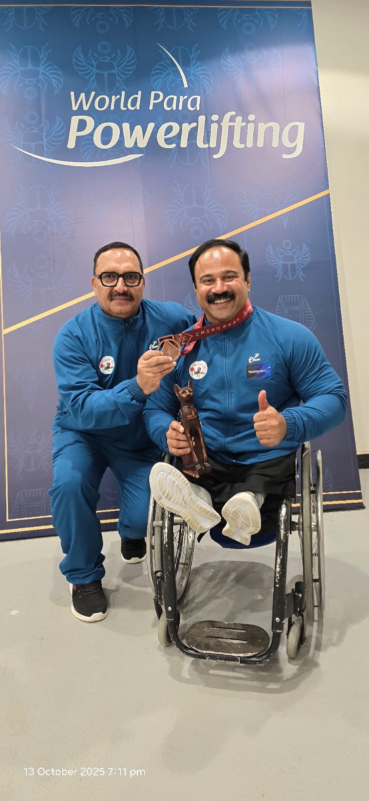 Cairo, Egypt: India’s veteran Para Powerlifter Joby Mathew added another glorious chapter to his illustrious career by clinching a historic Bronze Medal at the Para Powerlifting World Championships 2025, held at Cairo, Egypt.