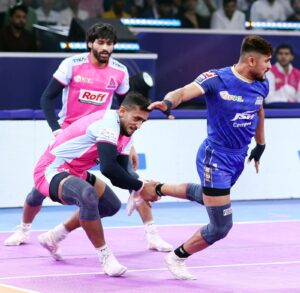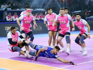 New Delhi: It was a match that went to the wire as the Jaipur Pink Panthers secured a close and impressive 30-27 win over the Haryana Steelers in Play-in 1 at the Thyagaraj Indoor Stadium in Delhi on Saturday. The defenders stood tall as Aryan Kumar scored a High Five while Deepanshu Khatri got four points for the Pink Panthers, while Nitin Kumar scored seven points. For the Steelers, Neeraj’s High Five was the main highlight.