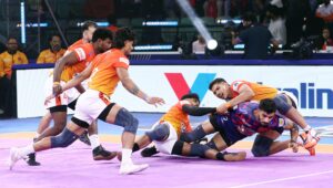 However, Puneri Paltan responded strongly with Aditya Shinde and Pankaj Mohite’s raids. Their defenders set the tone for a fightback with Abinesh Nadarajan and Gurdeep, and Vishal Bhardwaj eventually helped them get their revenge with an ALL OUT of their own, tying the game at 16-16.