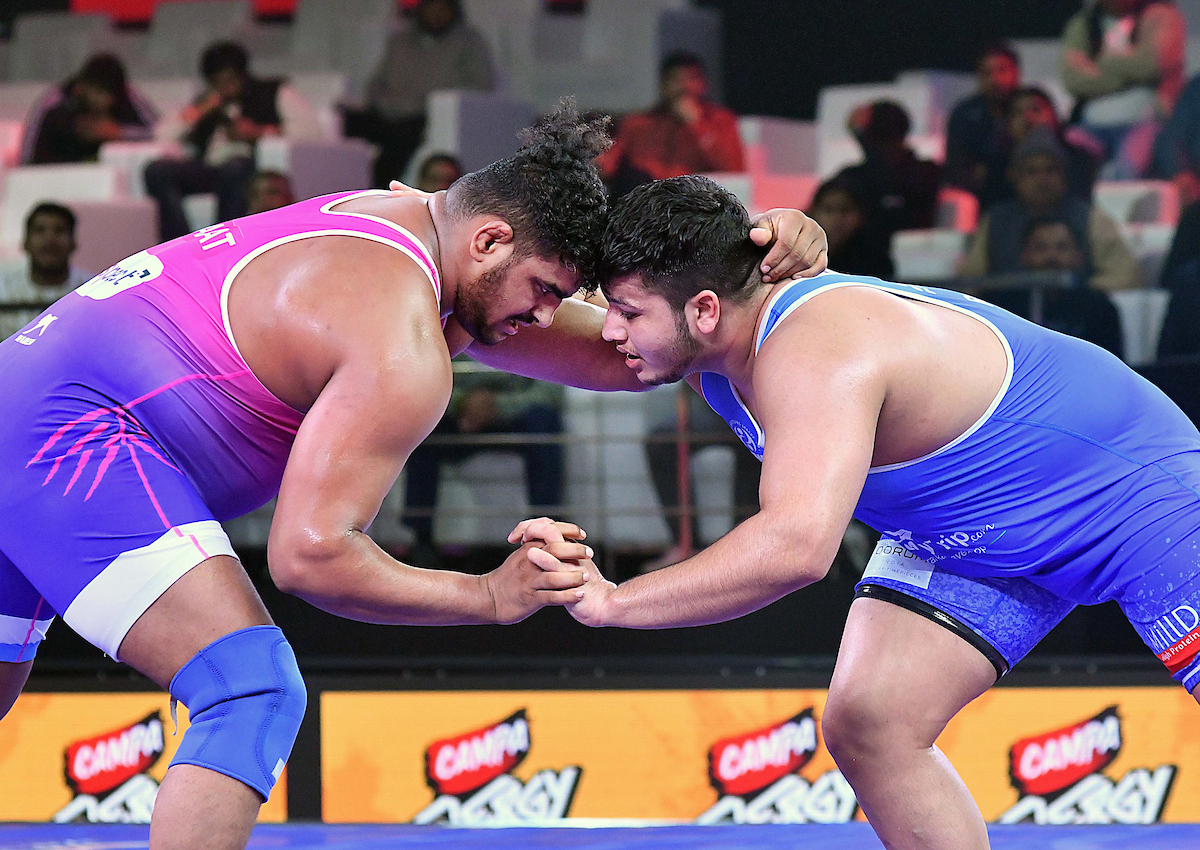 Bout – 1: 74KG (Men) Turan Bayramov (Delhi Dangal Warriors) defeated Deepak (Tiigers of Mumbai Dangals) (4-3)