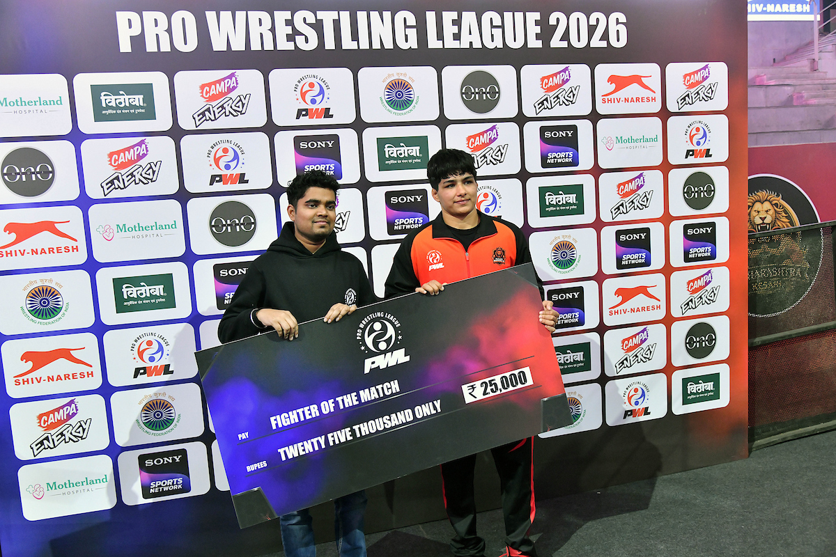 Noida: Haryana Thunders delivered a dominant all-round performance to outclass Punjab Royals 7–2, asserting control early and never relinquishing momentum in their first match of the season on late Friday night (Jan 16, 2026). Player of the Match Neha Sangwan delivered one of the standout performances of the tie with a dominant 8–0 victory over Punjab captain Roksana Zasina in the 57kg women’s bout, while U23 World Champion and Asian Championship Bronze medalist Priya Malik was named Fighter of the Match for her gritty performance in a tightly contested 76kg contest. The Pro Wrestling League 2026 is being played at the Noida Indoor Stadium from January 15 to February 1, 2026.