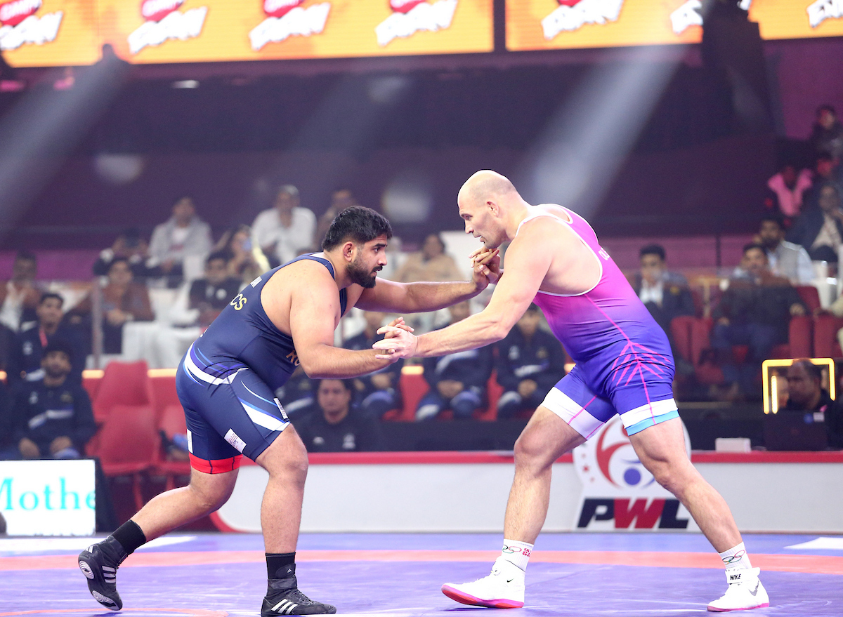 Bout – 1: 125KG (Men) Jaspooran Singh (UP Dominators) defeated Oleksandr Khotsianivskyi (Tiigers of Mumbai Dangals) by Points (3-1)