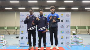 In the 10m Air Rifle Men Junior final, Gujarat’s Mohammed Murtaza Vania delivered an authoritative display to secure the gold medal with 254.3. Abhinav Shaw of West Bengal claimed the silver with 251.6, while Onkar Vikas Waghamare finished third with 230.1 to earn the bronze medal.
