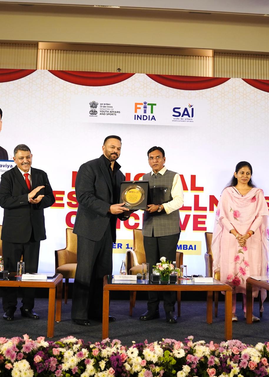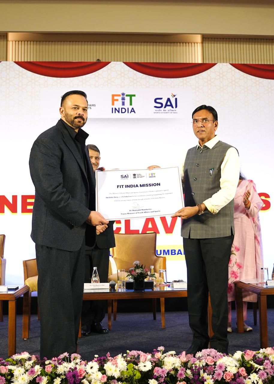 Mumbai: The Union Minister for Youth Affairs & Sports and Labour & Employment, Dr. Mansukh Mandaviya, felicitated the newly appointed Fit India Icons, Bollywood Producer Rohit Shetty, World Cup-winning cricketer Harbhajan Singh and Olympic medallist Saina Nehwal, at the National Fitness & Wellness Conclave 2025, held at The Trident in Mumbai today. The conclave celebrated India’s growing fitness and wellness movement under the Fit India Mission, marking a significant step towards building a Fit and Viksit Bharat.