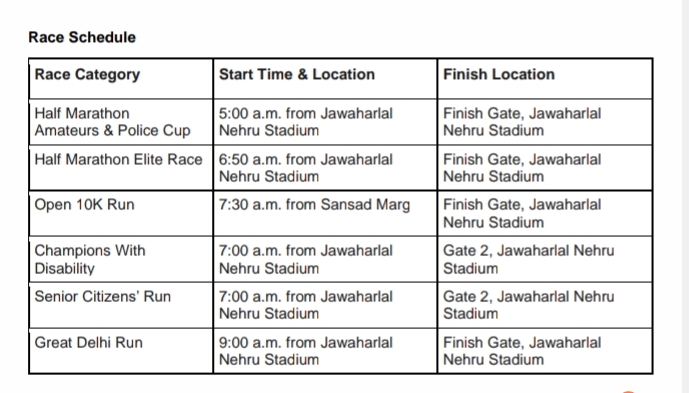 • 5 zones for Great Delhi Run participants, with music and cheering on the route